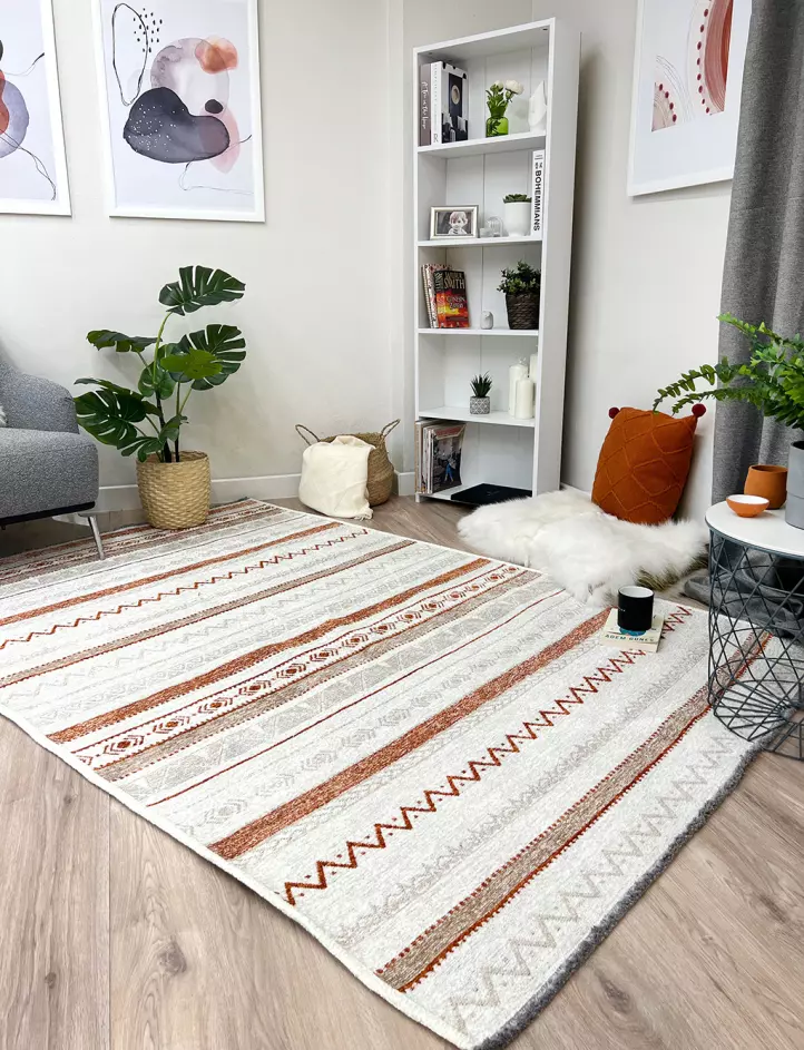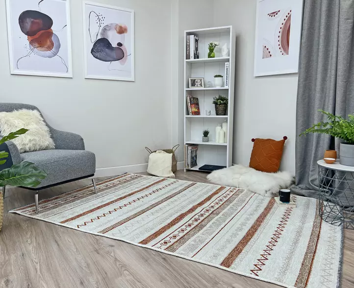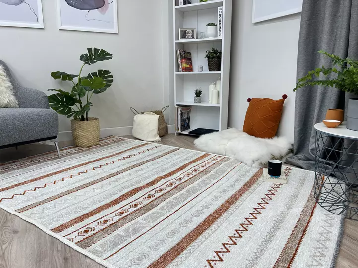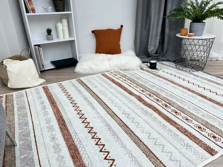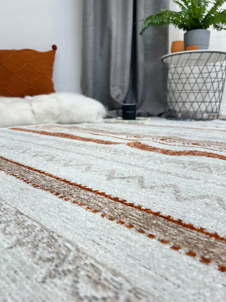 Moretti Nordi Koleksiyonu halılar %60 pamuk %40 polyester iplikten dokunmaktadır. Salon, oturma odası, yatak odası, çocuk odası, mutfak, banyo, yolluk, antre gibi evinizin bir çok farklı alanında kullanabilirsiniz. Yazlık veya kış bahçesi gibi  mekanlarınızda kullanım için de gayet uygun bir seçenektir. Dış mekan kullanımına uygun değildir.