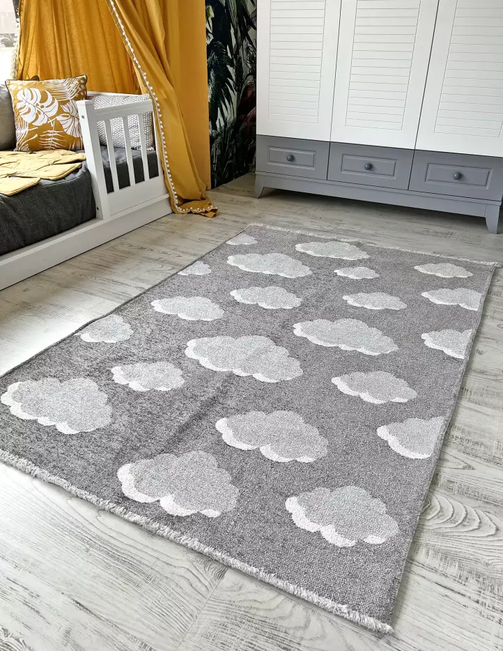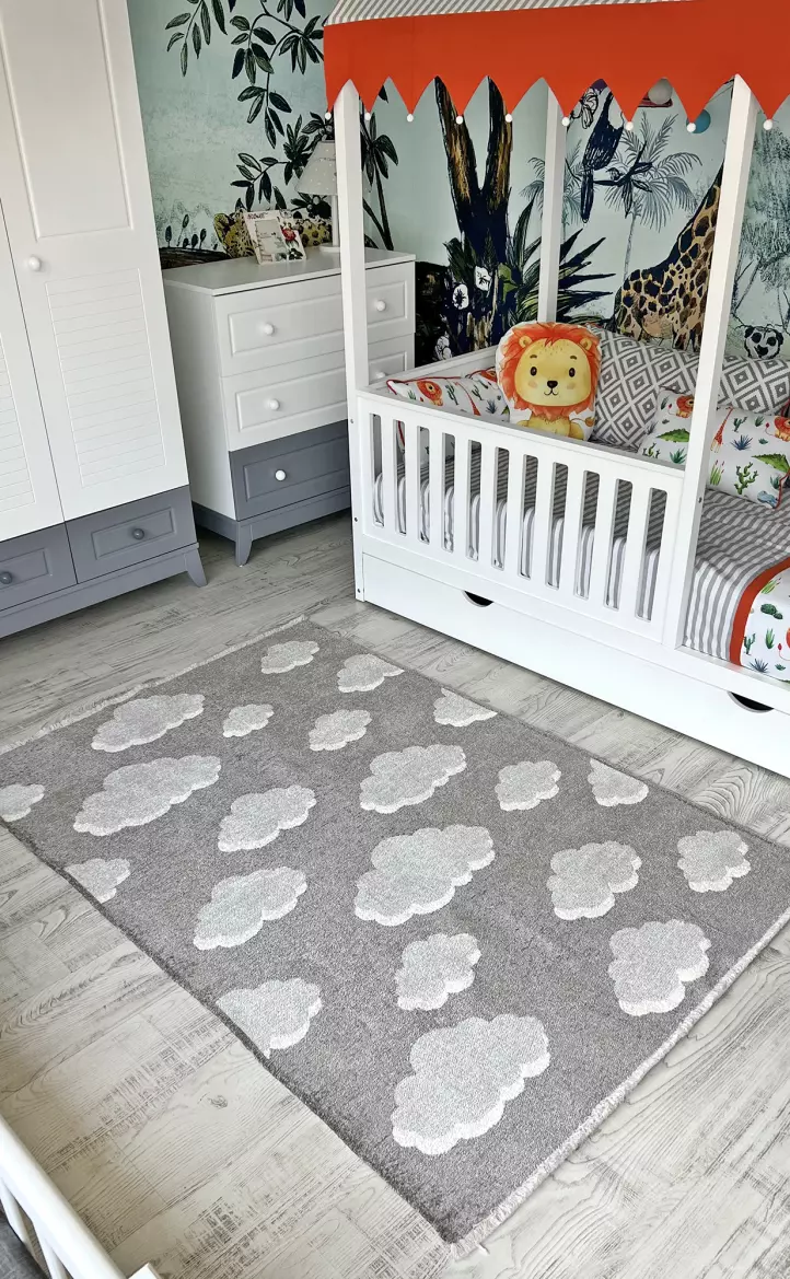 Moretti Side Çift Taraflı Çocuk Halısı 10920-A - 77cm x 150cm - Siyah&Gri